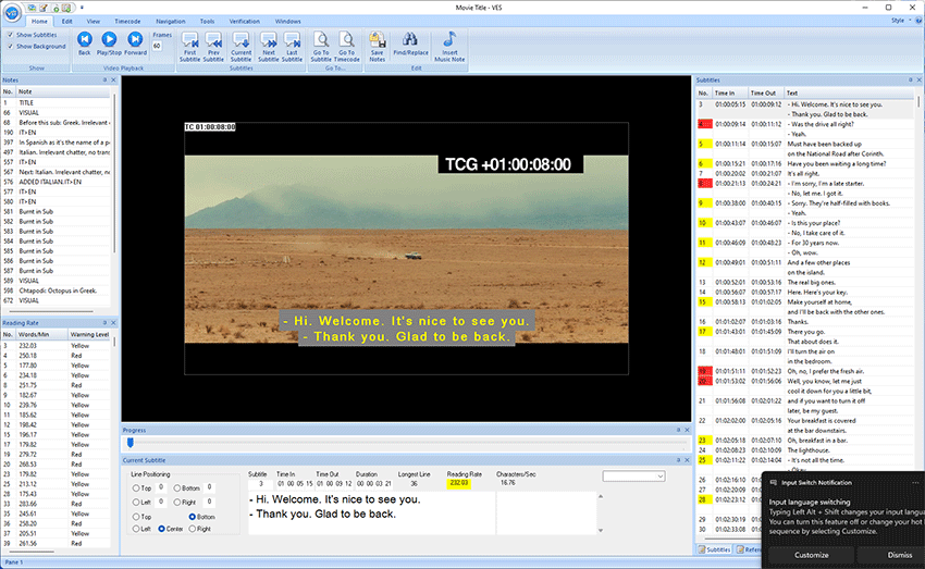 Used since the 90s in subtitling and captioning production, multiple input/output formats are supported natively.